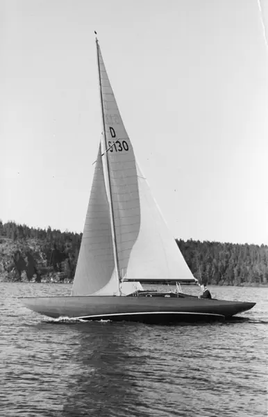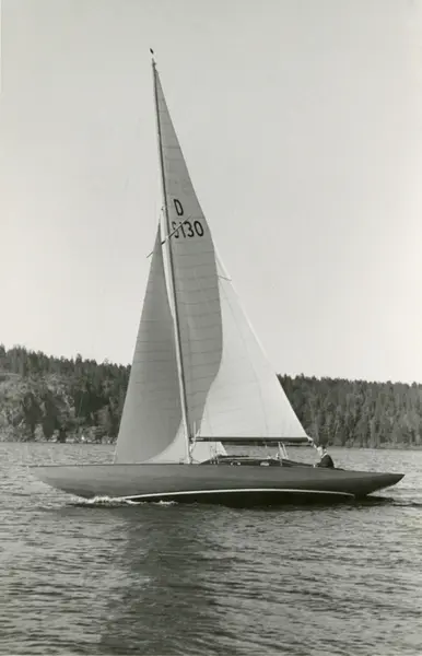 Övrigt: Att fotografiet tagits under Wilhelm Törsleffs ägartid framgår av presentationen av båten i Svenska Segelyachter 1943. I det årets utgåva av KSSS årsbok framgår dock att båten sålts till den Rolf Forshell som omtalas på kopians baksida. Forshell seglade båten till 1947, då den såldes vidare och fick namnet PAX AUREA. Fotografiet återgivet i Svenska Segelyachter (Sthlm 1943) s 343.