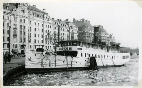 1962 Upplagd vid kaj i Stockholm. Senare flyttad till Högmarsö.