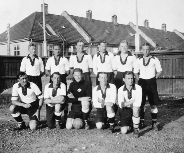 - Johnny Haby lengst til vendtre i bakre rekke. Rolf Johan Olsen er nr. 2 fra høyre i fremste rekke.