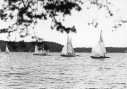 Övrigt: Förutom 5-S50 MARIBELL ses på denna bild även 5-S74 SAGA III, 5-S68 VIVIAN V (skymd), 5-S55 SJÖRÅTU, 5-S63 ANN (skymd) och 5-S66 GULLMAR III (skymd). De enda av KSSS poängseglingar under 40-talet dessa båtar tillsammans deltog i var de som ägde rum våren 1943; av de fyra seglingsdagarna i maj-juni deltog de ovannämnda båtarna gemensamt endast i seglingarna den 30 maj och den 5 juni. Det är genom andra bilder känt att Norberg bevakade seglingarna den 5 juni; han förefaller dock inte ha tagit några bilder den 30 maj. Det kan således antagas att även detta fotografi är från den 5 juni.
