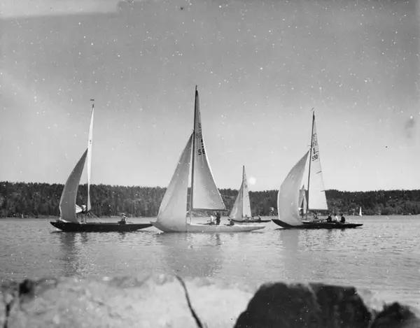 Övrigt: En jämförelse med seglingsprotokollen tyder på att bilden tagits antingen vid KSSS poängseglingar våren 1943 eller under Juniregattan samma år. Förutom 5-S68 VIVIAN V ses på bilden t h 5-S50 MARIBELL (b. 1940 konstr. Tore Holm), i bakgrunden 5-S55 SJÖRÅTU (b. 1941, konstr. Arvid Laurin) samt t v en oidentifierad båt. Namnuppgifterna ovan bygger på antagandet att bilden är från 1943; VIVIAN V såldes till nästa säsong och fick namnet ÖRNUNGEN (senare SPIN och TACK); MARIBELL döptes följande år om till MARIBELL II.