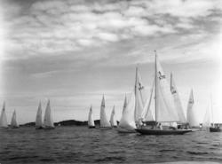 Övrigt: Från Sandhamnsregattan 31 juli 1943, Torskobben. Bakom SUNNY syns en anhopning 5m-jakter (5-S54 PEGGY, 5-S32 SMARAGDEN, 5-S35 GULLMAR, 5-S71 MA PETITE, 5-S53 SARA, 5-S48 GUDUNGEN och 5-S49 LILL-ULLA II). I bakgrunden syns längst t v 5-S63 ANN samt starbåtarna 1803 WATERGIRL, 637 TOUAOUMOA och 1799 PETITA.