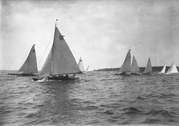 Övrigt: Från SK40:nas och SK45:ornas start vid distanskappseglingen fredagen 6 augusti under Sandhamnsregattan 1920. Närmast kameran i v bildfält med segelnummer 45-S2 ses FYLGIA. Båten längst t v är 40-L14 ZULEIKA (b. 1920, konstr. Gustaf Estlander). Bakom FYLGIAs akterlik ses skymd 40-S27 ELVI (b. 1918, konstr. Carl Holmström). Båtarna i h bildfält leds av 40-S20 GIL II (b. 1919, konstr. Erik Salander). Därefter följer två båtar utan permanentnummer och längst t h en båt med segelnummer 40-S26; av tillgängliga källor framgår inte vilken båt som haft detta segelnummer 1920. Källor KSSS årsbok 1921 och Thelander: Alla Våra Skärgårdskryssare (1990). Fotografiet återgivet i KSSS årsbok 1921 s 196.