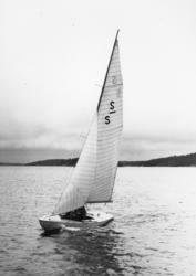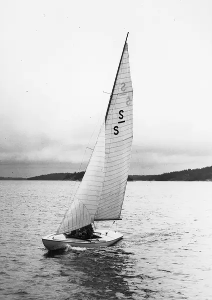Övrigt: Bilden tagen 12 juni 1948 på Trälhavet; den nybyggda S-S2 CHANCE deltog där i SS Vegas Saltsjöregatta, som detta år samarrangerats med KSSS Juniregatta. I seglingsreferatet i KSSS årsbok 1949 s 86 uppges båten tillhöra ett konsortium inom KSSS, men i förteckningen över sällskapets segeljakter (ibid. s 244) omtalas Stig Hedberg som ägare. Där uppges även båtens segelnummer som S-S2, vilket inte framgår på bilden.
