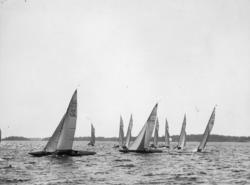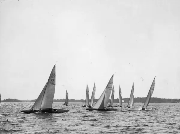 Övrigt: Det är oklart i vilket sammanhang denna bild tagits. Antagandet i baksidesanteckningen är i alla händelser felaktigt, då seglingarna om Skärgårdskryssarpokalen 1938 inte äg...