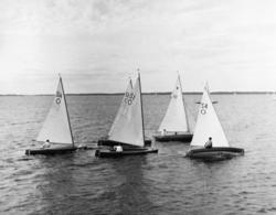 Övrigt: Segelnumren samt stämplarna på kopians baksida tyder på att denna bild tagits under Sandhamnsregattan 1940; detta har dock inte kunnat bekräftas. Uppgiften om geografisk plats ovan baseras på att Fo134210, som tagits vid samma tillfälle som det aktuella fotot, då den återges i Svenska Segelyachter (Sthlm 1943) s 460 uppges vara tagen på Kanholmsfjärden. OLYMPIAJOLLEN O-S14 är båten längst t v; framför ses fr v t h O-jollarna 16 (skymd), 1 och 4 samt stjärnbåten 111 ANTARES (b. 1936).