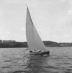 Övrigt: Denna båt var Svenska Kryssarklubbens utlottningsbåt 1944 (se artikel i Svenska Kryssarklubbens årsskrift 1944 s 190 ff) och Arnold Hjorth dess förste ägare efter utlottningen. Den fick senare segelnummer KR-S170. I bakgrunden Finnboda varv. Fotografiet i beskuret skick återgivet bland försättsplanscherna i KSSS årsbok 1945. Jfr KSSS-samlingens Fo134462 och -463, som uppenbart är tagna vid samma tillfälle.