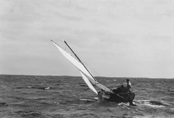 Övrigt: Från Volontärernas Sandhamnsregatta 1936, lilla havsbanan utanför Sandhamn 27 juli. SNÄCKAN framfördes vid detta tillfälle av Thure Stendahl (KSSS årsbok 1937 s 106, s 160 f och s 223). Fotografiet i beskuret skick återgivet i KSSS årsbok 1937 s 106. Jfr alternativexponering Fo134443 i KSSS-samlingen; se även Fo134434.