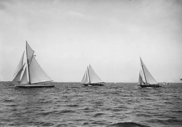 Övrigt: Från Norrköping-Sandhamns-regattan 1906, första starten vid första dagens seglingar 10 juli, kappsegling utanför Arkö. SAN TOY (ex GARM IV) med segelnummer 2 är båten t v; i mitten ses med segelnummer 3 VENUS (b. 1906, konstr. Axel Nygren) och t h med segelnummer 5 PSYCHE (b. 1906, konstr. Hugo Schubert).