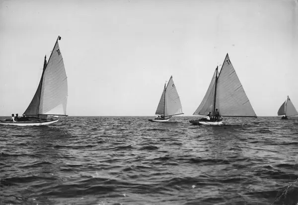 Övrigt: Från seglingarna under den s k Norrköpingsveckan under Norrköping-Sandhamns-regattan i juli 1906. Båten närmast i h bildfält med seg...