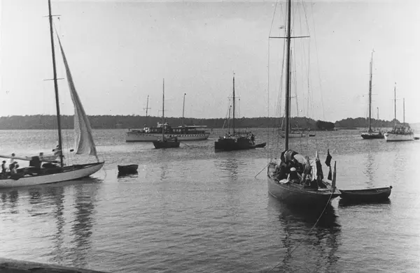 Övrigt: I juli 1936 gjorde båtar från KSSS en eskadersegling till Helsingfors för att bevista Nyländska Jaktklubbens 75-årsjubileum. Degerby på Föglö på Åland, där bilden togs 5 ju...
