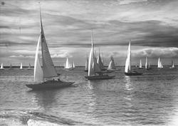 Övrigt: Från Sandhamnsregattan 1943, Mälar 30:or på Kanholmsfjärden lördagen 31 juli. De enda båtar som säkert kan identifieras är M30-55 ESS VI närmast kameran i v bildfält samt, långt i bakgrunden t h, ÖR-jakten och lottbåten Ö6-S1 KSSS 1943 (b. 1943, konstr. Tore Herlin; efter utlottningen HAPPY).