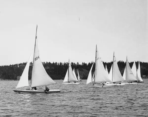 Övrigt: Från KSSS poängseglingar våren 1943, starbåtar på Baggensfjärden 5 juni. 1804 BRIDGE II i förgrunden t v; därefter följer 2120 MÄRTHA (b. 1943), 860 ASTRA (b. 1931), 861 SVARTSTAREN (skymd; b. 1932), 1799 PETITA (skymd; b. 1939) samt 1802 UNN (skymd; b. 1939). Att märka är att 2120 MÄRTHA (andra båt fr v) förekommer på bilden utan att figurera i seglingsprotokollet (KSSS årsbok 1944 s 220 f).