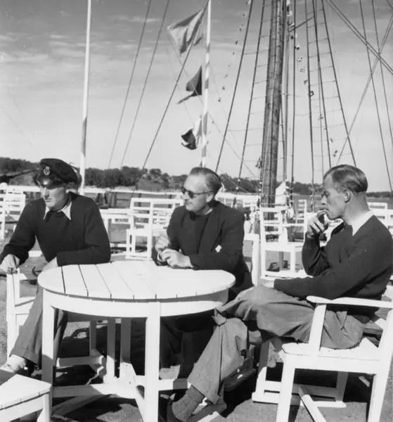 till vänster om Schulz med stor sannolikhet båtkonstruktören Tord Sundén (1909-1999)