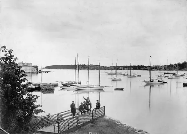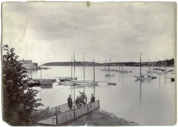 Övrigt: Från den s k Kejsarbryggan i Furusund inför KSSS eskadersegling till Helsingfors 1895, kl. 1.30 på morgonen fredagen 28 juni inför starten från Furusund. Ingen av båtarna h...
