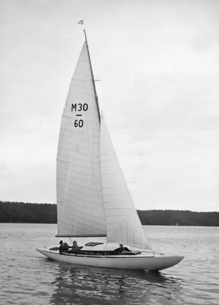 Övrigt: M30-60 LOMME LO (ex lottbåt SSS 1943; första ägaren efter utlottningen Ulla Edoff) fotograferad i Saltsjöbaden under KSSS poängseglingar hösten 1943, 12 september. Carl Sandblom deltog inte i dessa seglingar; att han bevistat dem med LOMME LO framgår dock av att Norberg tagit flera bilder från dem den 12 september. Enligt Olle Appelberg, båtens nuvarande ägare (2007), kommer båtnamnet av att Sandbloms lilla dotter inte kunde uttala sin storasysters namn; det blev Lomme Lo, vilket båten fick heta. Fotografiet återgivet bland försättsplanscherna i KSSS årsbok 1944. Jfr Norbergs bild Fo134988 i KSSS-samlingen, uppenbarligen alternativexponering från samma tillfälle.