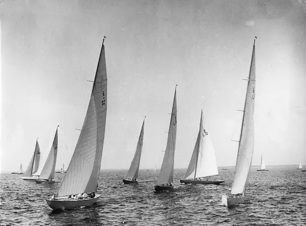 Övrigt: Från Sandhamnsregattan 24 juli 1936. Förutom 6-S2 MAY BE IV närmast kameran t v ses längst t v franska 6-F50 QU'IMPORTE (b. 1934, konstr. François Camatte), 6-N59 NORNA V (b. 1936, konstr. Johan Anker), 6-L17 ARNETA (b. 1936, konstr. Einar Olfsson), 6-L36 JOY (b. 1935, konstr. Tore Holm), 6-L12 FRIDOLIN (b. 1930, konstr. Tore Holm) och 6-L26 VINNIA (b. 1935, konstr. Christian Jensen).