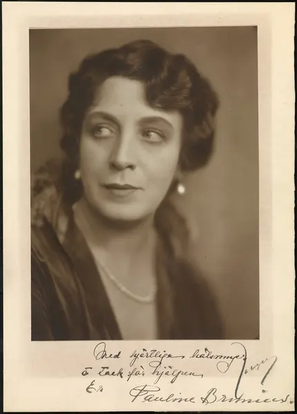 - Påskrift: "Med hjärtliga hälsningar ó tack för hjälpen. Er Pauline Brunius."