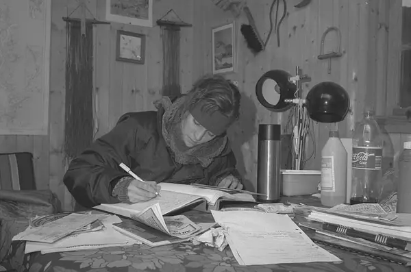 Gunilla Hallset dokumenterar föremål i Alf Gustafssons sjöbod.