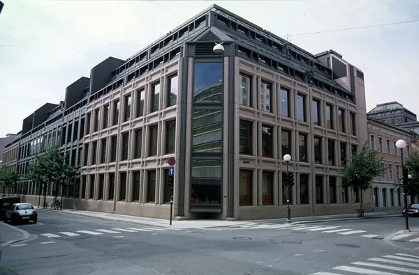 - Norges Banks kontorbygning. Hjørnet mot Dronningens gate og Rådhusgata.