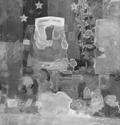 Adresseavisen har laget en montasje av flere bilder. Til venstre FTTF.SCH.V.028282.05/FTTF.SCH.V.028282.02.0002. I midten FTTF.SCH.V.028287.07/FTTF.SCH.V.028282.02.0005. Til høyre FTTF.SCh.V.028282.01. Montasjen har følgende bildetekst: "Fra Julemessen 1952: Fra venstre de meget morsomme "halmdamer". Et utsnitt av pasientenes arbeider på Kalvskinnet sykehus - og et lite utsnitt av det festlige "lottebordet". I midten Aagot Knudsen, som har arbeidsterapien på Kalvskinnet".