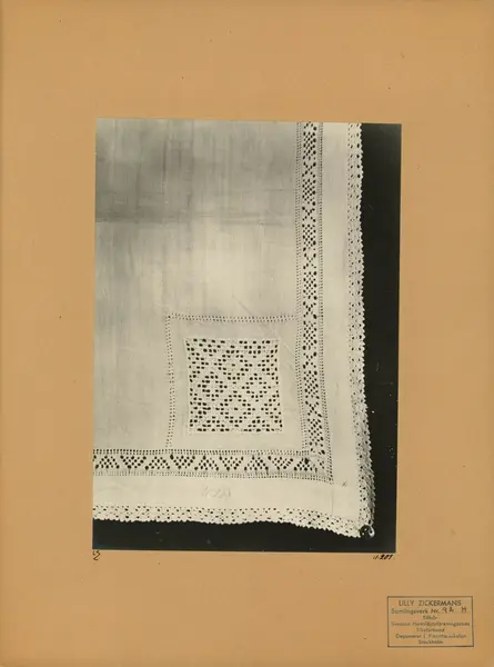 - ArkivreferenserOriginalbilder och glasplåtar (24 000) från Lilli Zickermans inventering av folklig textil under åren 1910-1932 finns på Nordiska museet i Stockholm.