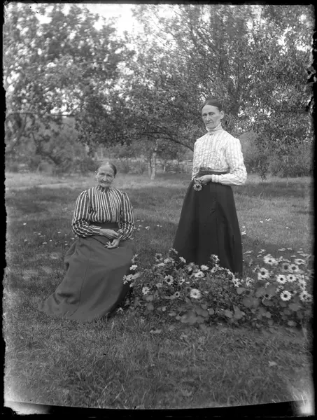 Kvinnan till höger är Sofia Kristina Kullgren. Tilltalsnamn Kristina. Hon föddes 30 december 1857 på Kullerud i Lyrestad. Dog 16 juli 1917 i Skara stadsförsamling. Kristina var ogift och hade inga barn.
