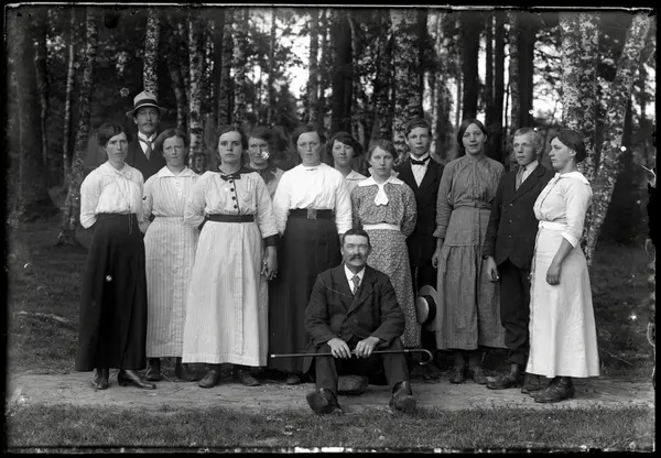 Som Nr 2 är fotografen Gustaf Andersson, han är min farfar i Kroken. Detta foto är taget före den 1/11 1916. Det var då som fotografens hustru Anna född Johansson i Påvelsberg Bäreberg, flyttade till sin syster Tilda, och hennes man Johannes Johansson i Lars Bryntesgården Skarkroken. De vigdes 17/2 1916. Tildas man Johanes finns inte med på bilden bara Tilda så fotot är troligen taget sommaren 1915 eller tidigare. Min farmor Anna född Johansson berättade om "Nöjet" troligen var det där som Gustaf och Anna träffades. De hade sälskap i flera år och gifte sig 1922. Gustaf ville vara säker på att han kunde försörja en familj, detta med tanke på hans hjärtfel. Ett tidigt foto före Gustaf och Anna var gifta så finna Anna Johansdotter med på 50-års kalas för Sven Svensson i Krusegården, de var grannar till Skarkroken. Där sitter min farmor i mitten, hon hade ljus randig klänning med mörka knappar och mörk rosett i halsen och mörkt ok på klänningen. Min farmor var som ung mycket vacker.
