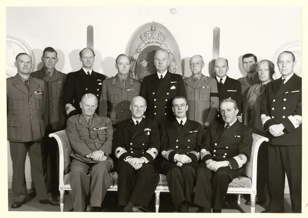 konteramiral E.Samuelson. Stående från vänster: chefen för Göteborgs