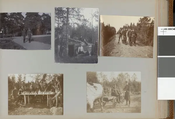 - Fotografiet ingår i album innehållande bilder från början av 1900-talet föreställande soldatliv bland annat vid Andra Svea artilleriregemente A 5 och vid Boden-Karlborgs artilleriregemente A 8. Bland bilderna finns fotografier från olika fälttjänstövningar och även bilder med mer civila inslag.