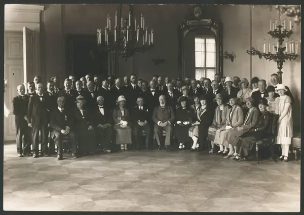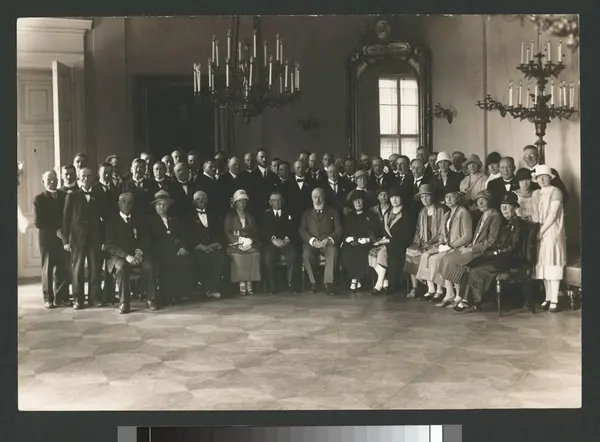 Bilden visar gruppfoto i Wien med Österrikets president Michael Hainisch i bildens centrum. Axel Åckerberg är den sätte personen i andra raden från höger. Förmodligen togs bilden i...