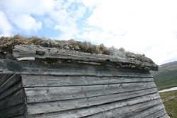 Løa er i dårlig forfatning. Ønsker å restaurere den, delvis liggende panel, ringved med kolver.