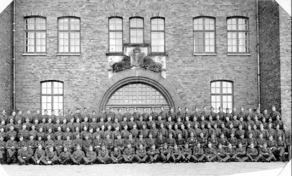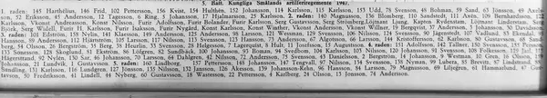 Batterichef: kapten Rydenstam, sergeant Björk, Widell, Gustavsson, Strömberg, löjtnant Ljung, Linderstam. Inramad foto finns.- FotografOkänd