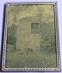 Fotografi av Bautasteinen på "Rytterhaugen" ved den innvigde urneplassen. Fotografiet kjem frå 1962. Det står vidare: "Jonsok 1952 vart bautaen reist av bygdefolket i Ustedalen og på Geilo, og andre vener. Dei siste linene Henrik Rytter skreiv, er hogd inn på bautaen: Og likevel ja, likevel mi ånd i nattemyrke røyningsstunder trur enn på livsens store morgonunder". Vedlagt fotografiet følgjer ei informasjonstekst. Både foto og tekst er i glas og ramme. Biletet av bautaen har måla 12,2 x 17,2 cm, medan teksten har måla 18 x 18 cm.
