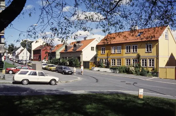 - Bilen nærmest er en Peugeot 504 stasjonsvogn.