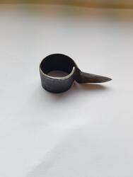 En garnkniv som ble brukt til garnbøting og garnbinding. Kniven satt på langfingeren på samme hånd som en holdt nåla i.