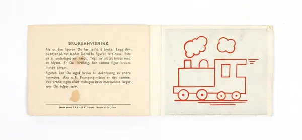 Heftet har små mønster som hvorav noe er brukt til å brodere på løyerter til Inger Kristin Sletten av hennes mor Ingrid Sletten.- Giver/siste eierSletten, Inger Kristinsikker