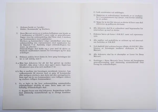 - Brukt under seremonier til Oslo Kvinnelige Handelsstands Forenings orden Dona Mercuri