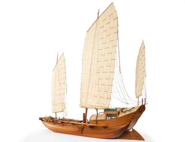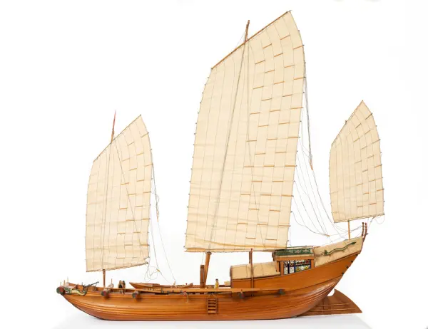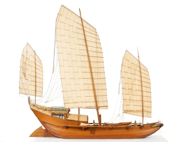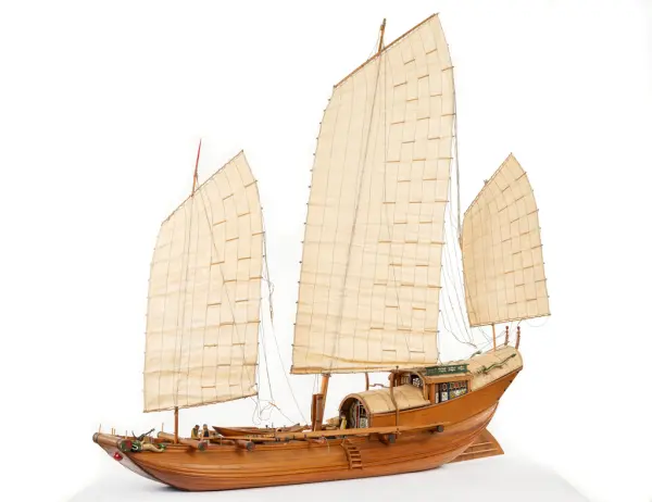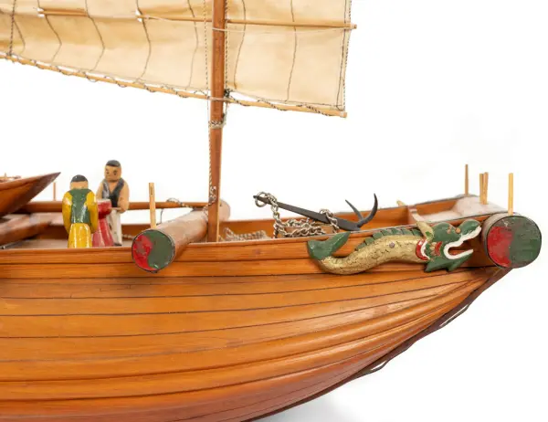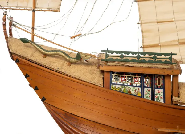 - Modellen hemförd från Wan-Hsien i provinsen Szechuan, Kina, av sjökapten Harald Eckerman, 1934. Modellen är närmast lik en floddjonk på Yangtze Kiang, men har överdriven utsmyckning och rigg.
