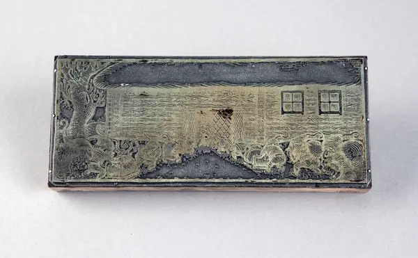 - Kliché använd för tryck av material med motiv från friluftsmuseet Disagården. Har använts i Upplandsmuseets verksamhet.