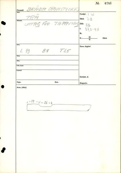 I Vasa, Övre batteridäck, balk 22-24, babord, Längd från för: 3720-4000- FyndplatsI Vasa, Övre batteridäck, balk 22, babord