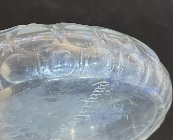 Flaskan är graverad "C.A.Fagerlund" (Carl Albert Fagerlund), grundaren av Åfors glasbruk.