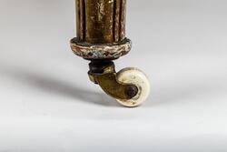 Benen har kortats av och kompletterats med trissor (hjul) i mässing under 1800-talets andra hälft.