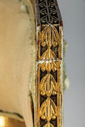 Senare bemålning i guld. Äldre rödbrun färg kan anas under förgyllningen.