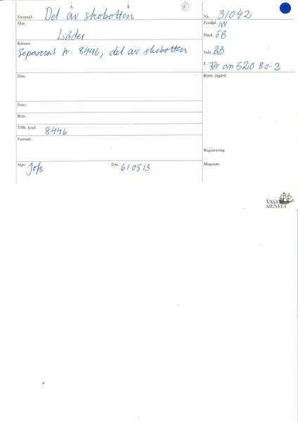 - FyndplatsI Vasa, Övre batteridäck, balk 1-2, babord
