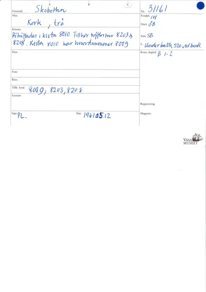 I Vasa, Övre batteridäck, balk 1-2, styrbord, Längd från för: -5,50 m- FyndplatsI Vasa, Övre batteridäck, balk 1-2, styrbord