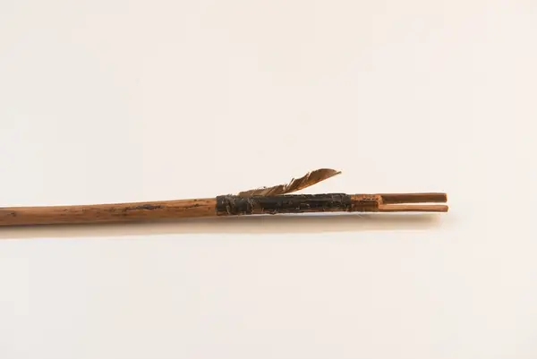 N: en fragmenterad styrfjäder kvar. Pilspetsens ena sida är trasig.