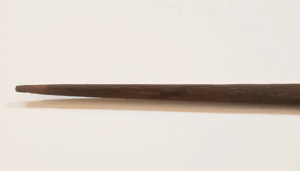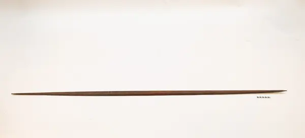 Dessa vapen, förda af öfvade Kongonegrer, äro sannerligen ej att leka med. Exempel. Med spjutet från Loukandu - exempelvis - borras ganska ledigt en menniskokropp tvärs igenom, och spjutslungaren förfelar i regeln icke målet sin fiendes hjerta på 50 stegs afstånd. Giftet till pilarne erhålles genom krossade giftiga myror och giftiga växter, hvari pilspetsen omedelbart före användandet doppas. Stridsyxorna äro ofta af konstnärligt utarbetad form - en af de skänkta utvisar prof härpå - och naggande goda, om än små. Dolkbladen äro tunna, breda och skarpa; spjuten och pilarne ofta försedda med hullingar. Det böjda svärdet användes vid högtidliga tillfällen till att - hugga hufvudet af slafvar. T. ex. då en stor höfdings gemål går hädan. Ett antal slafvar placeras vid dylika tillfällen s under ett träd med hufvudena fastbundna E vid böjda grenar. Svärdet beskrifver en a kraftig båge och för hvarje sväng skiljes ett slafhufvud från tillhörande kropp samt & följer den nu lättade grenen upp i luften.