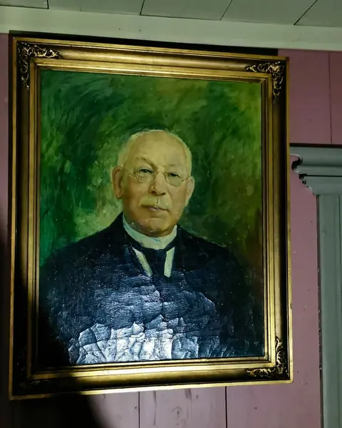 Motivet er basert på et fotografi av Ernest Rude. Ant. tatt i perioden han var statsarkivar (1914-1921). Thomle sørget bl.a. for å igangsette og samle inn kirkebøker.