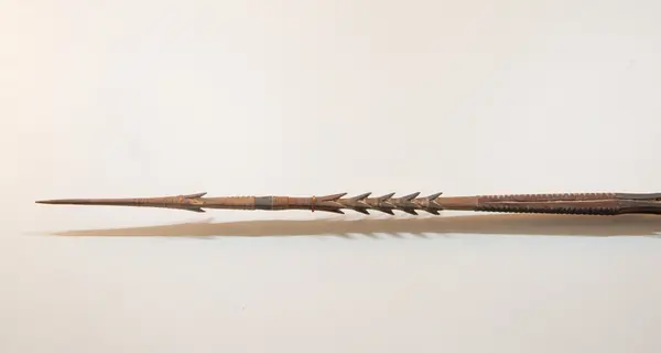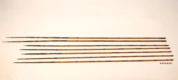 Hedberg, O[lof], H[ilmer], Hobart-town, Austr. en dyrbar samling från ön Santo nära Nya Guinea, hvaribland 5 kastspjut med långa hullingar, flera bågar med tillhörande pilar, svärd besatta med hajtänder, 2-ne åror målade med menniskoblod, kottar af barrträd, m.m.